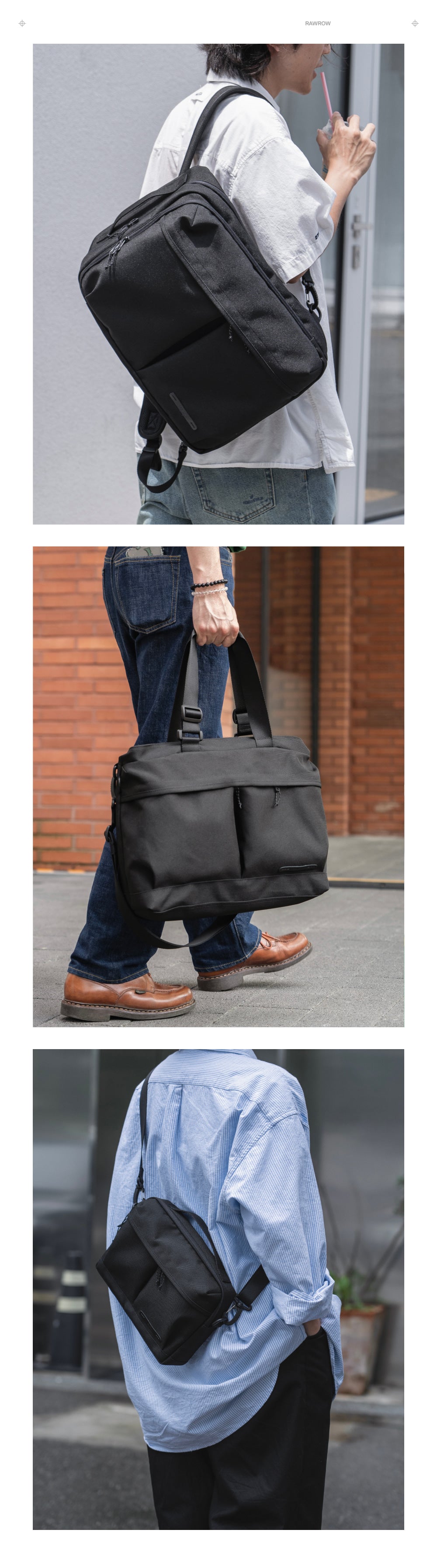 RAWROW designs TRIPWEAR for everyday wanderers. Trip begins the moment you step outside, and our items are designed for your convenient storage and seamless travel. Born in Seoul, since 2011, we've focused on the raw essence of our products, designing TRUNK, BAG and EYEWEAR.