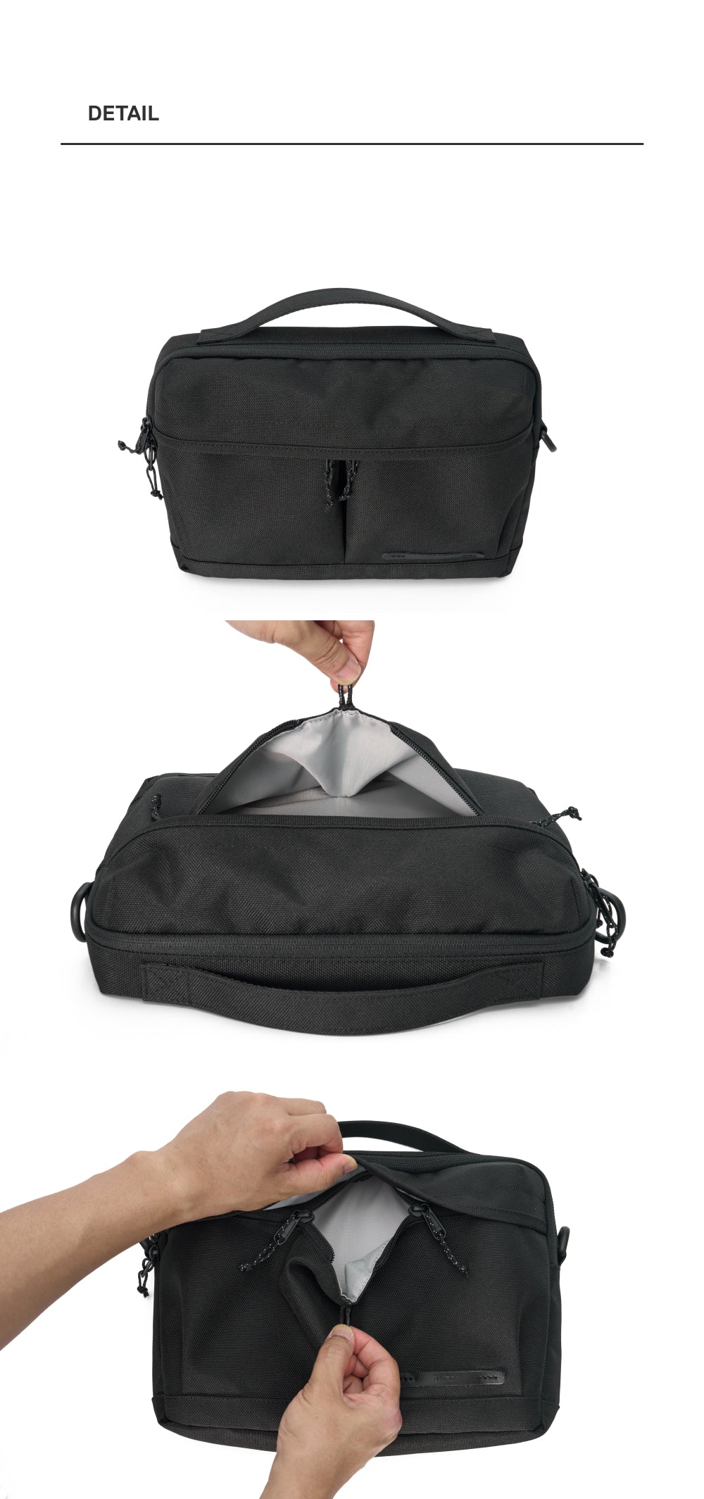 • By pulling the drawstring at the center front of the bag, the pocket can be opened and closed quickly.