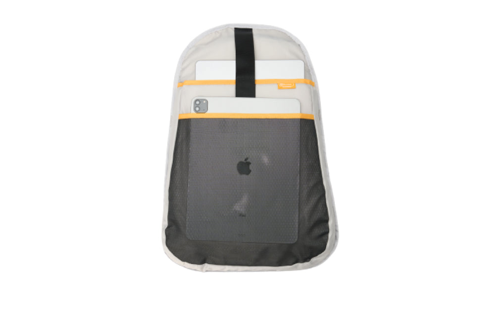 *White – electronic devices / Orange – frequently used items / Black – main pocket