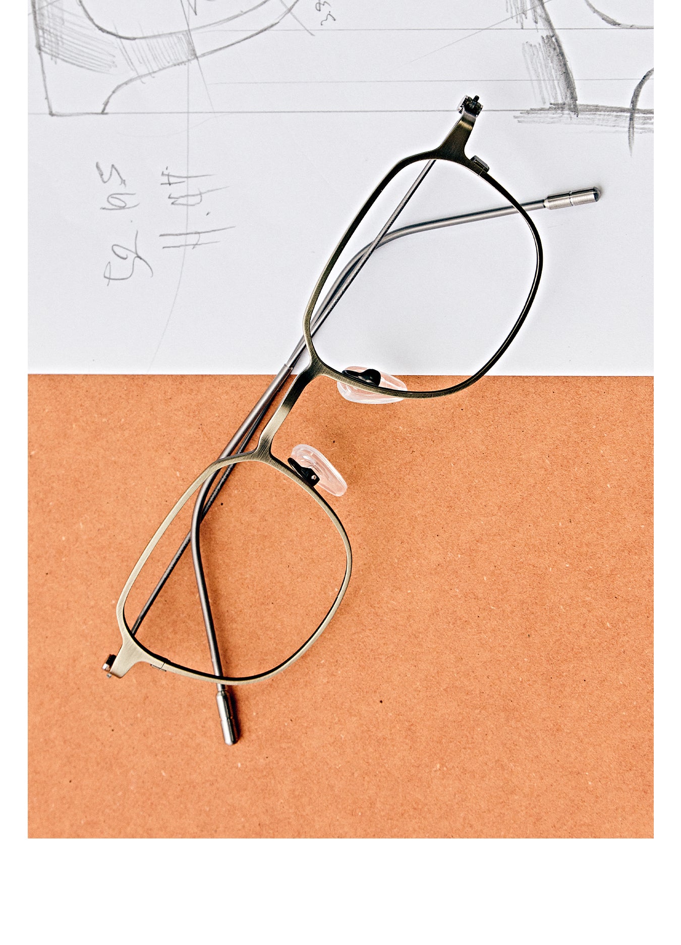 The temples are made of beta titanium, which weighs half as much as pure titanium. It is highly resilient, resistant to breakage under strong force, and offers excellent shape recovery. As one of the finest materials for eyewear, it contains no impurities, making it safe even for those with metal allergies.