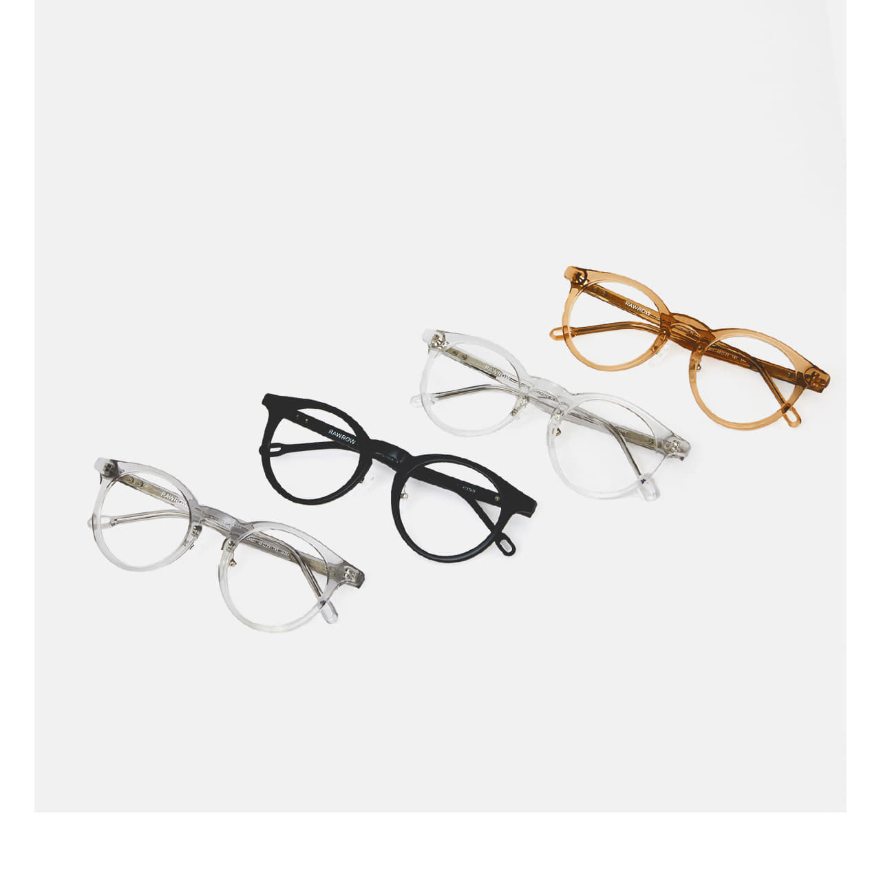 Eyewear with a built-in clip you won’t forget after taking off—R EYE ULTRA CLIP. Designed with a clip attached to the temple, so you can easily hook your glasses anywhere when washing your face or resting your eyes. For RAWROW, eyewear is not a fashion accessory but a medical tool that protects and supports vision. We design our glasses with the hope that they will be worn for 10 years or more, beyond trends.