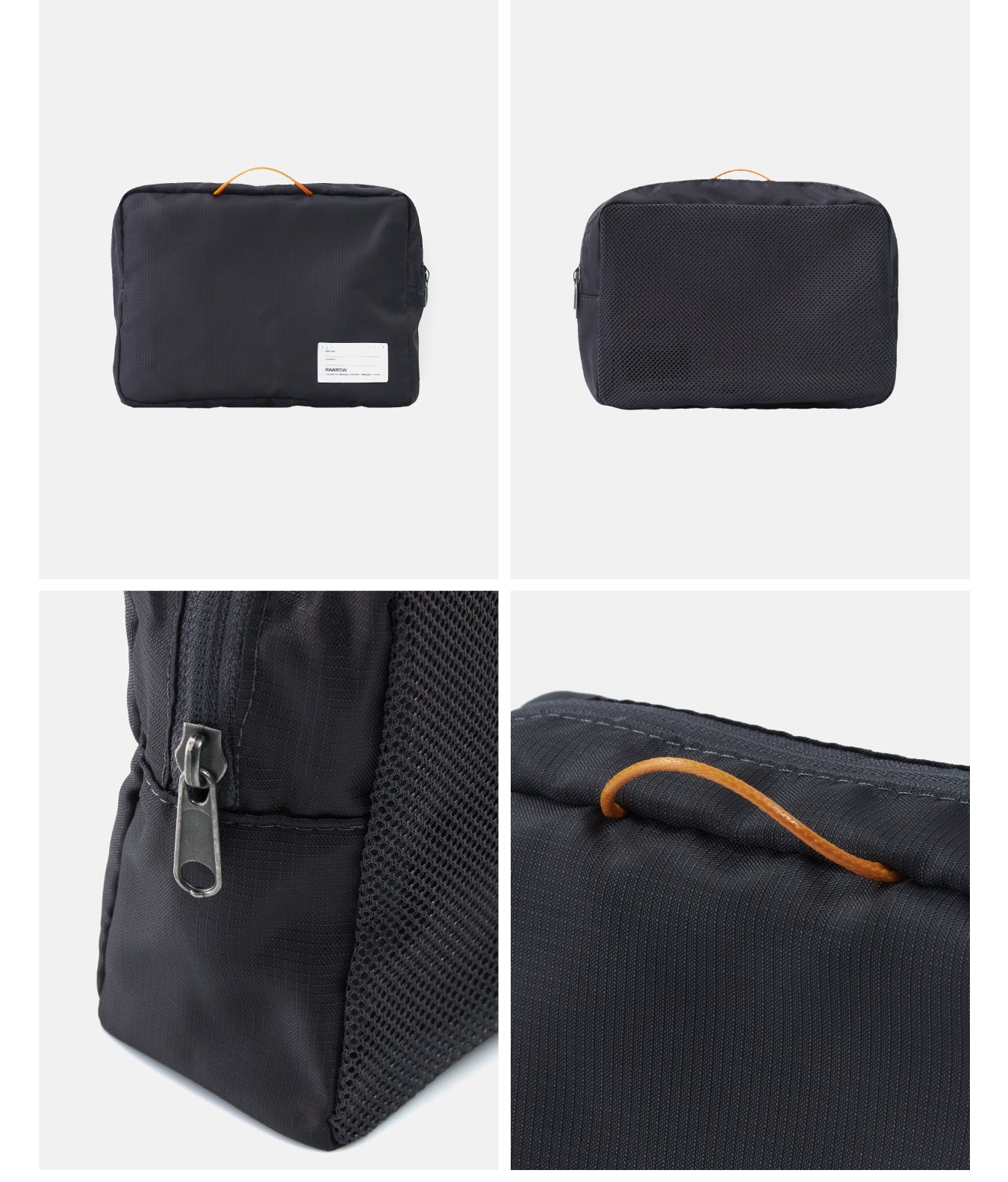 The pouch is designed to be soft while maintaining its shape. When packing together with other belongings, it minimizes the space taken up by the travel pouch.