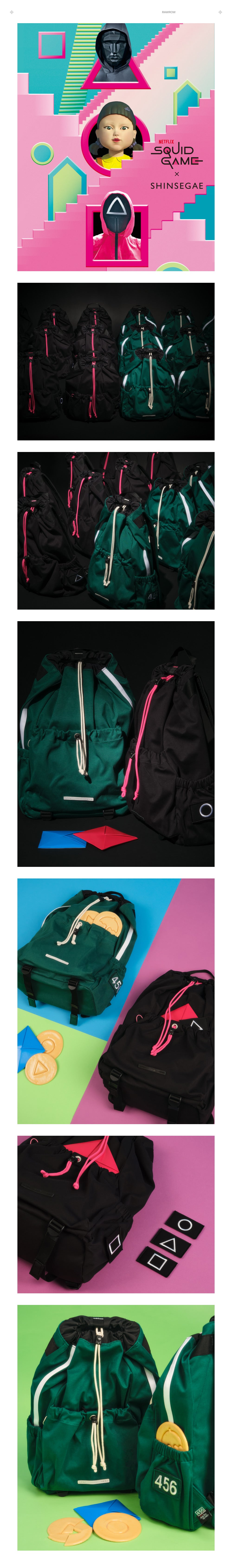 Through RAWROW’s string backpack filled with iconic elements from Squid Game, you are invited into the world of the game.