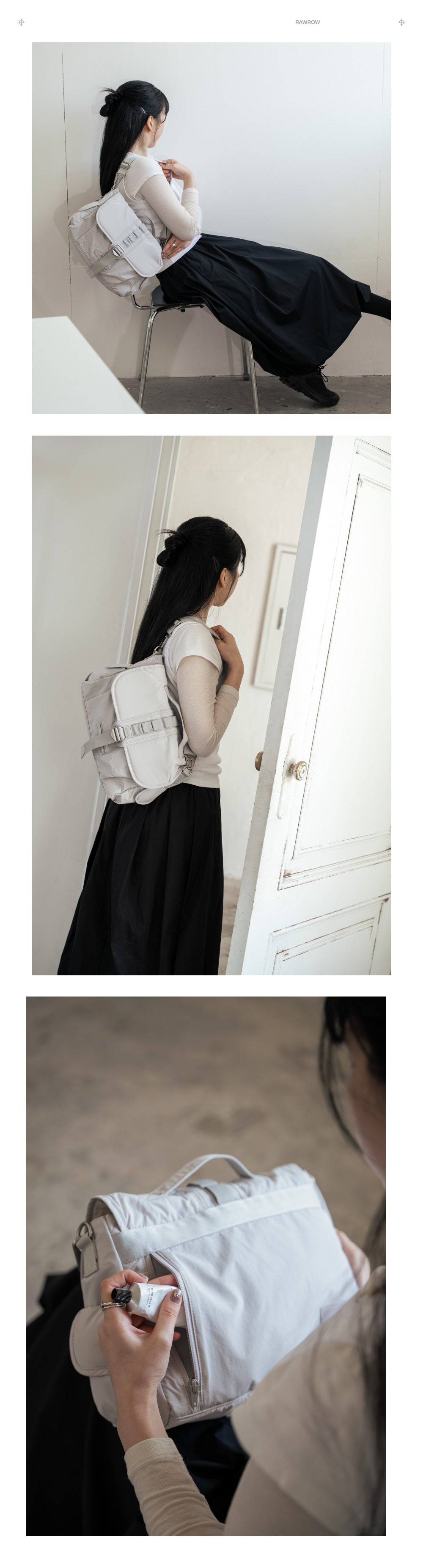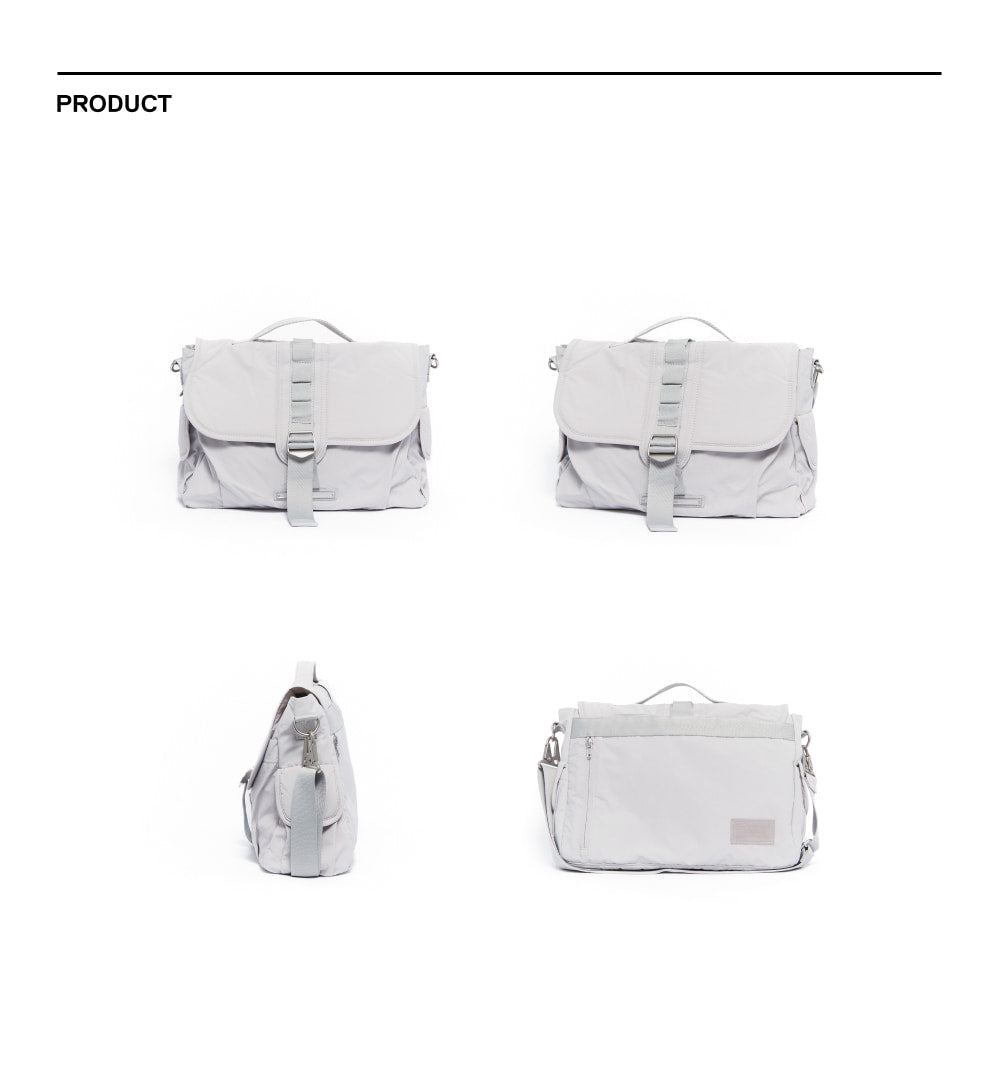 Using nylon fabric, the bag naturally flows along the body’s silhouette, while magnets and metal plates add comfort and ease to the opening and closing experience.