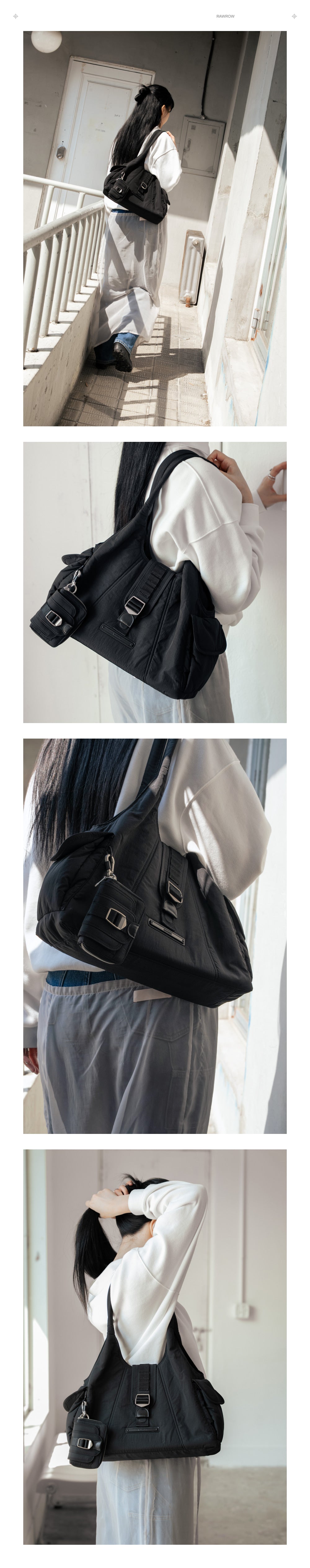 Using nylon fabric, it creates a naturally flowing silhouette along the body, while magnets and metal plates add comfort to the opening and closing of the bag.