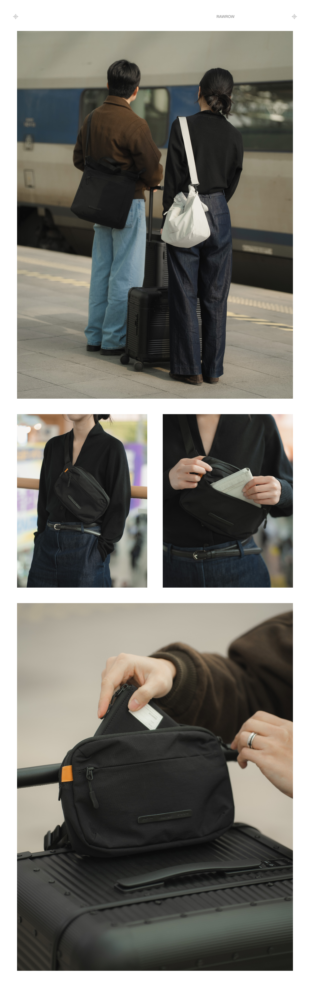 RAWROW designs TRIPWEAR for everyday wanderers. Trip begins the moment you step outside, and our items are designed for your convenient storage and seamless travel. Born in Seoul, since 2011, we've focused on the raw essence of our products, designing TRUNK, BAG and EYEWEAR.